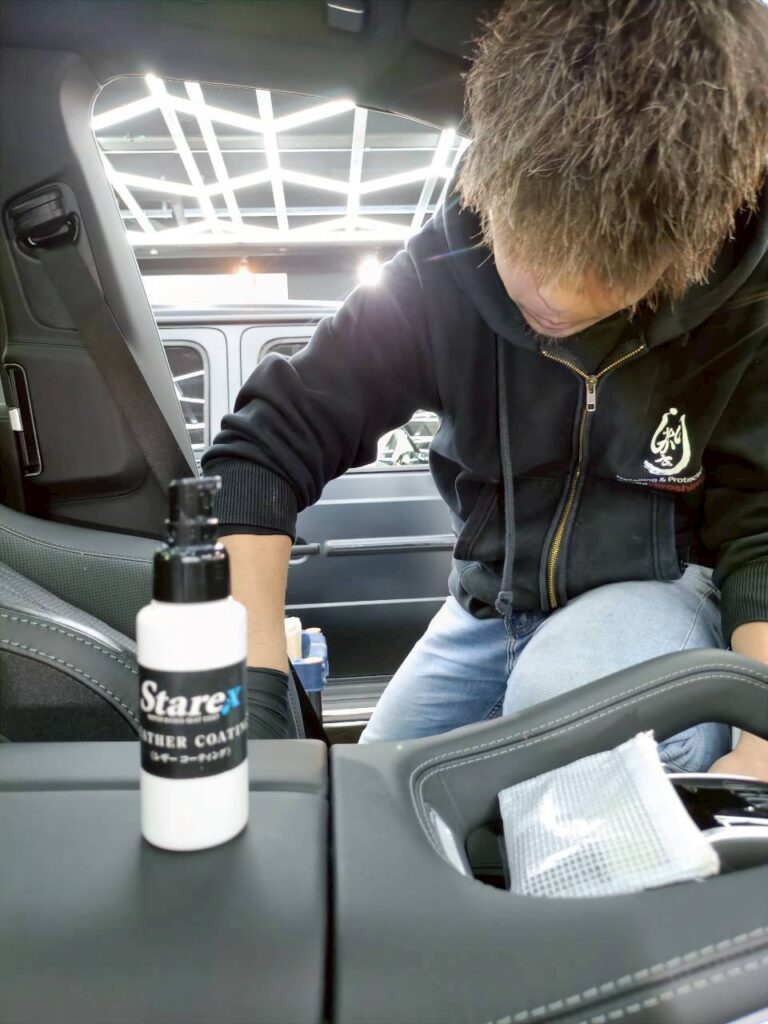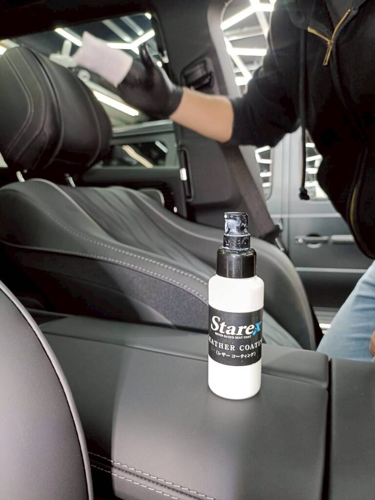 撥水“重視”ではなく、**防ぎたい汚れから逆算したStarex水性シートコーティング(レザー用)**でした。