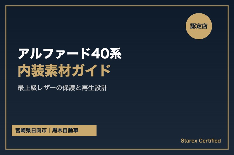 アルファード40系は豪華な内装が魅力ですが、素材によって劣化パターンが異なります。宮崎県日向市の紫外線・塩害環境では特に早期の対策が重要です。